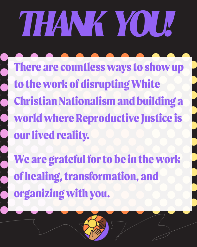 Last year we completed the A SACReD Journey Curriculum, a 9-part curriculum for congregations and communities to learn about Reproductive Justice and faith, and translate that education into action in their communities.