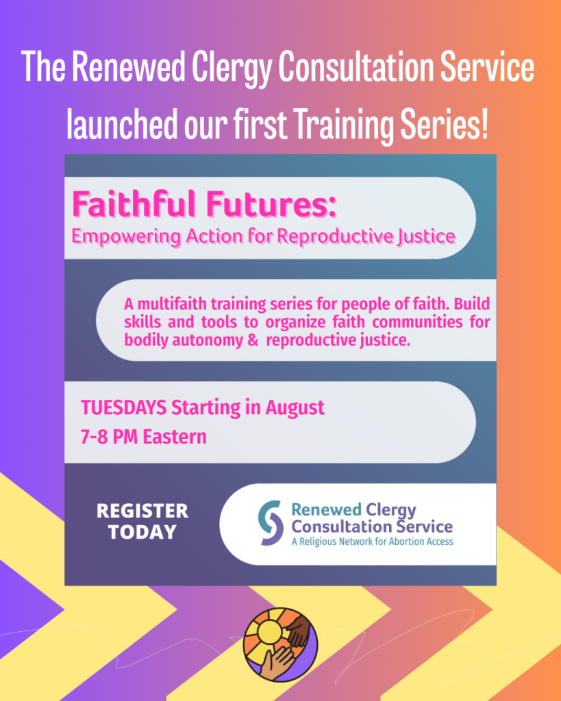 In fall 2025, the Renewed Clergy Consultation Service launched our first training series, Faithful Futures: Empowering Action for Reproductive Justice. This Coalition of 7 organizational partners, trained 237 Spiritual Leaders and Community Organizers across 6 workshops!